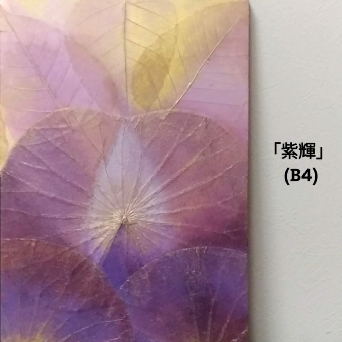 B5サイズの木製パネルに蓮や菩提樹を貼る