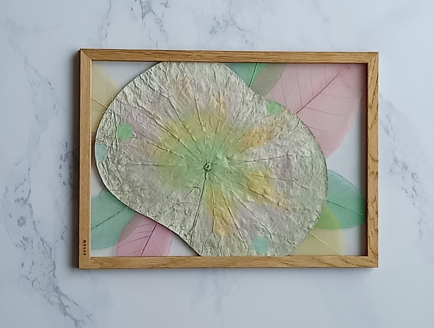 着色した天然の蓮の葉を配置。