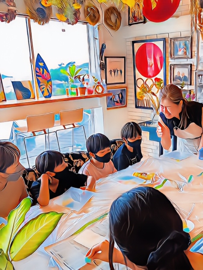 『この葉っぱはね、緑色をとってね、色を塗ったんだよ。』